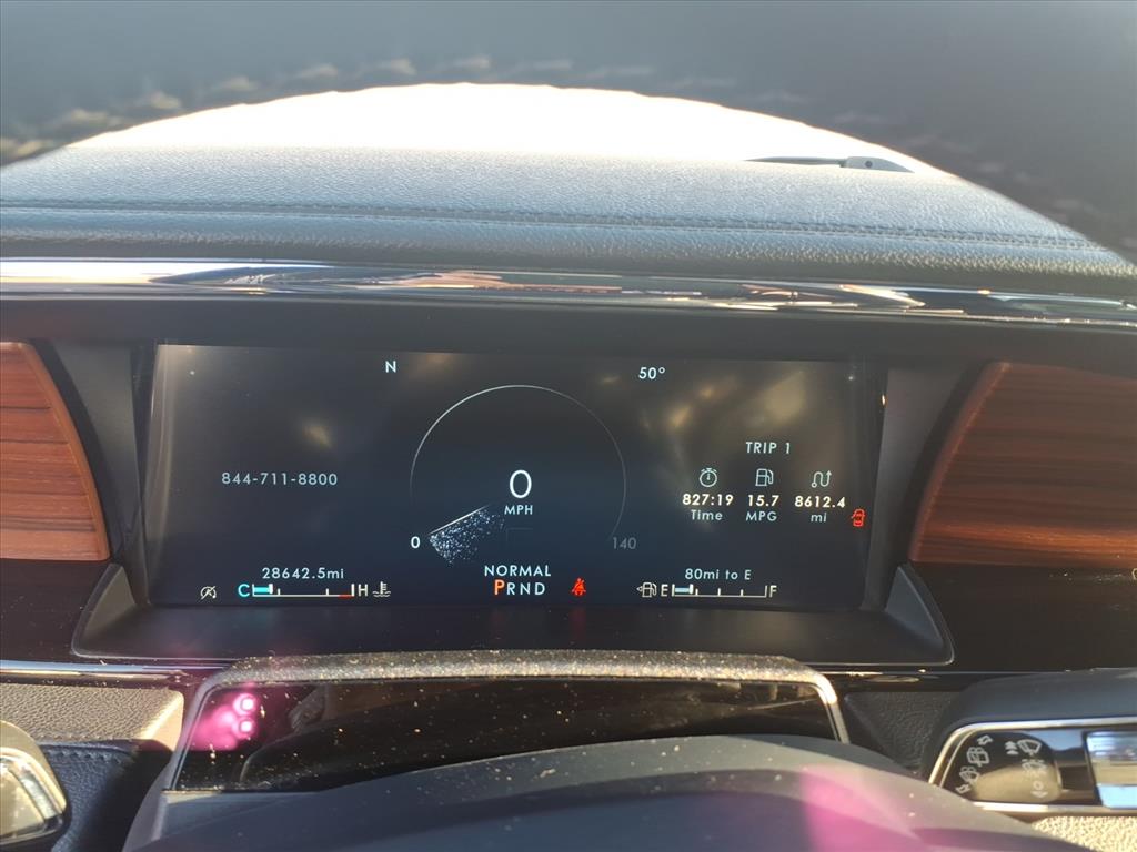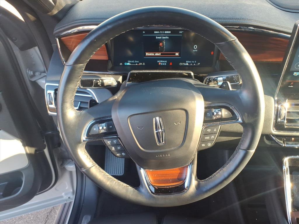 Lincoln Certified Pre-Owned Certified, 4WD, Black Onyx Leather, 14 Speakers, 2nd Row Heated/Ventilated 40/Console/40 Seat, 3.73 Axle Ratio, 3rd row seats: split-bench, 4-Wheel Disc Brakes, ABS brakes, Active Park Assist 2.0 Delete, Adaptive suspension, Adjustable pedals, Air Conditioning, All-Weather Floor Liners w/Carpet Floor Mats, Alloy wheels, AM/FM radio: SiriusXM with 360L, Audio memory, Auto High-beam Headlights, Auto Start-Stop Technology, Auto tilt-away steering wheel, Auto-dimming door mirrors, Auto-dimming Rear-View mirror, Auto-leveling suspension, Automatic temperature control, Body-Color Exterior Mirror Finish, Bodyside moldings, Brake assist, Bumpers: body-color, Compass, Delay-off headlights, Driver door bin, Driver vanity mirror, Driver's Seat Mounted Armrest, Dual front impact airbags, Dual front side impact airbags, Electronic Stability Control, Emergency communication system: 911 Assist, Equipment Group 201A Reserve I, Exterior Parking Camera Rear, Four wheel independent suspension, Front anti-roll bar, Front Bucket Seats, Front dual zone A/C, Front fog lights, Front reading lights, Fully automatic headlights, Garage door transmitter, Genuine wood dashboard insert, Genuine wood door panel insert, Hands-Free Liftgate Delete, Head restraints memory, Heads-Up Display, Heated door mirrors, Heated front seats, Heated rear seats, Heated steering wheel, HVAC memory, Illuminated 1st & 2nd Row Seat Belts, Illuminated entry, Leather steering wheel, Lincoln Lit Star in Grille, Low tire pressure warning, Luxury Package, Memory seat, Monochromatic Lincoln Badge, Monochromatic Lincoln Grille, Monochromatic Package, Navigation system: Connected Navigation (3-year trial), Occupant sensing airbag, Outside temperature display, Overhead airbag, Overhead console, Panic alarm, Passenger door bin, Passenger seat mounted armrest, Passenger vanity mirror, Pedal memory, Perfect Position Seats (30-Way) w/Active Motion, Power adjustable rear head restraints, Power door mirrors, Power driver seat, Power Liftgate, Power moon