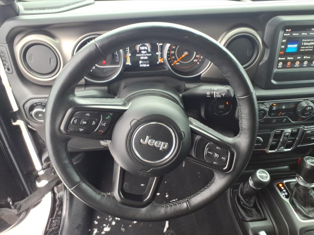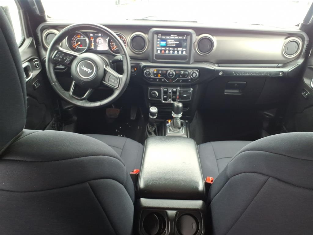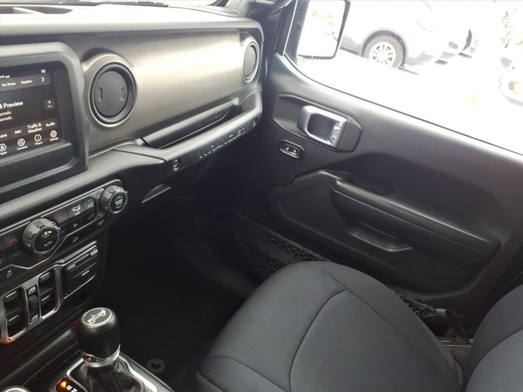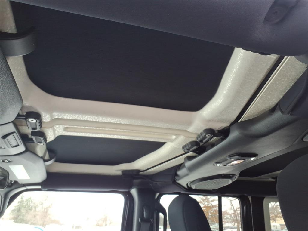 1-Yr SiriusXM Radio Service, 3.45 Rear Axle Ratio, 4-Wheel Disc Brakes, 7.0 Touchscreen Display, 8 Speakers, ABS brakes, Air Conditioning, Air Conditioning w/Auto Temperature Control, Air Filtering, AM/FM radio, Anti-Spin Differential Rear Axle, Apple CarPlay, Automatic Headlamps, Brake assist, Bridgestone Brand Tires, Cloth Low-Back Bucket Seats, Cluster 7.0 TFT Color Display, Cold Weather Group, Compass, Convenience Group, Deep Tint Sunscreen Windows, Delay-off headlights, Driver door bin, Driver vanity mirror, Dual front impact airbags, Dual front side impact airbags, Electronic Stability Control, For More Info, Call 800-643-2112, Front 1-Touch Down Power Windows, Front anti-roll bar, Front Bucket Seats, Front Center Armrest w/Storage, Front fog lights, Front reading lights, Google Android Auto, GPS Antenna Input, Heated Front Seats, Heated Steering Wheel, Integrated Center Stack Radio, Integrated roll-over protection, Leather Wrapped Steering Wheel, Low tire pressure warning, Manufacturer's Statement of Origin (DISC), MOPAR All-Weather Floor Mats, Non-Lock Fuel Cap w/o Discriminator, Normal Duty Suspension, Occupant sensing airbag, Outside temperature display, ParkView Rear Back-Up Camera, Passenger door bin, Passenger vanity mirror, Power Heated Mirrors, Power steering, Premium Black Sunrider Soft Top, Quick Order Package 28S Sport S, Radio data system, Radio: Uconnect 3 w/5 Display, Radio: Uconnect 4 w/7 Display, Rear anti-roll bar, Rear reading lights, Remote Keyless Entry, Security Alarm, SiriusXM Satellite Radio, Speed control, Speed Sensitive Power Locks, Split folding rear seat, Steering wheel mounted audio controls, Sun Visors w/Illuminated Vanity Mirrors, Tachometer, Technology Group, Telescoping steering wheel, Tilt steering wheel, Traction control, Trip computer, Universal Garage Door Opener, USB Host Flip, Variably intermittent wipers, Wheels: 17 x 7.5 Black Steel Styled, Wheels: 17 x 7.5 Tech Silver Aluminum.