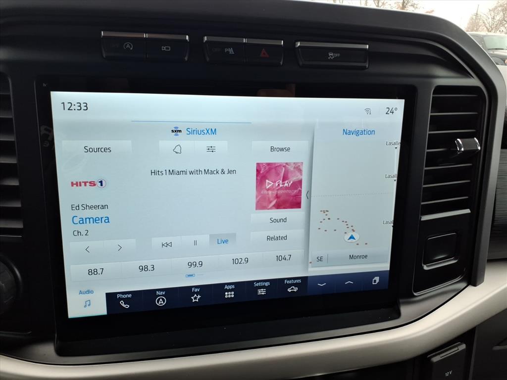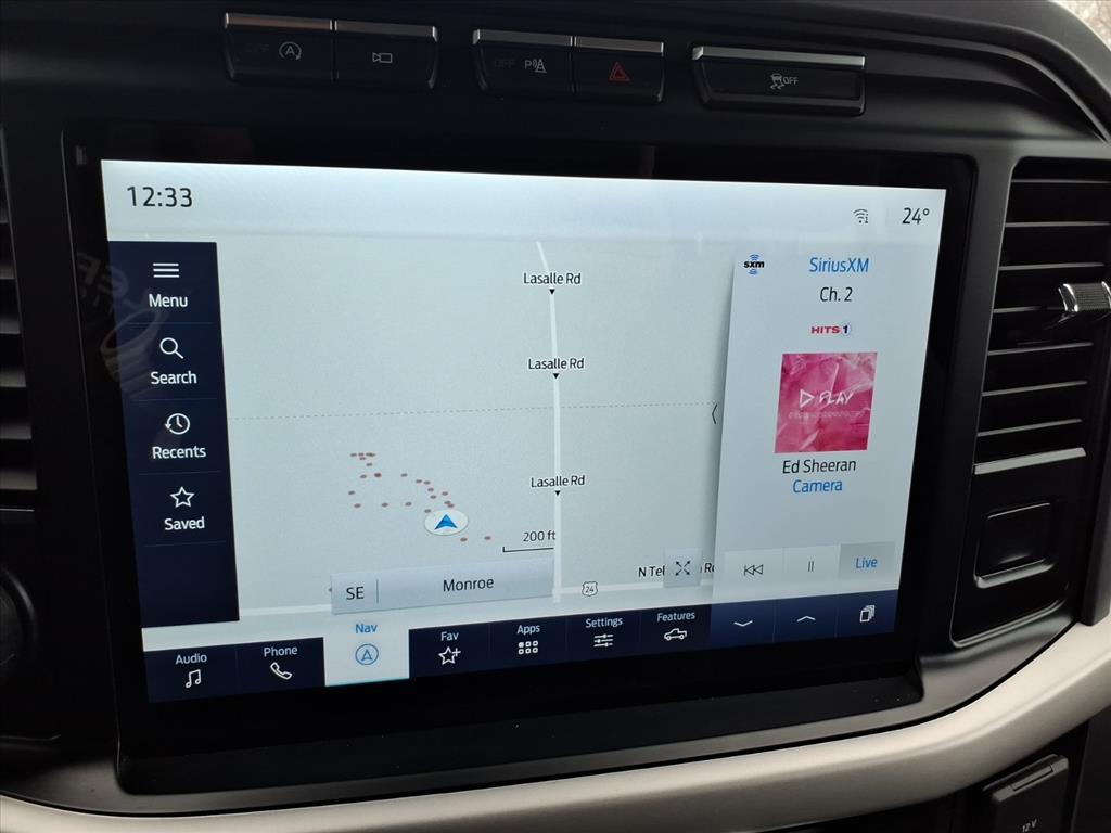 4WD, 10-Way Power Driver & Passenger Seats, 18 Machined-Aluminum Wheels, 2-Bar Style Grille w/Chrome 2 Minor Bars, 360 Degree Camera, 4-Wheel Disc Brakes, 6 Speakers, 8 Productivity Screen in Instrument Cluster, ABS brakes, Air Conditioning, Alloy wheels, AM/FM radio, Auto High-beam Headlights, Auto-Dimming Rear-View Mirror, BoxLink, Brake assist, Bumpers: chrome, Chrome Door & Tailgate Handles w/Body-Color Bezel, Chrome Single-Tip Exhaust, Chrome Step Bars, Class IV Trailer Hitch Receiver, Cloth 40/20/40 Front Seat, Compass, Connected Built-In Navigation, Delay-off headlights, Driver door bin, Driver vanity mirror, Dual front impact airbags, Dual front side impact airbags, Dual Zone Automatic Temperature Control, Electronic Stability Control, Emergency communication system: SYNC 4 911 Assist, Equipment Group 302A High, Evasive Steering Assist, Exterior Parking Camera Rear, Ford Co-Pilot360 Assist 2.0, Front anti-roll bar, Front Center Armrest w/Storage, Front fog lights, Front reading lights, Front wheel independent suspension, Fully automatic headlights, GVWR: 6,470 lbs Payload Package, GVWR: 6,600 lbs Payload Package, Heated door mirrors, Heated Front Seats, Illuminated entry, Integrated Trailer Brake Controller, Intelligent Access w/Push Button Start, Intelligent Adaptive Cruise Control w/Stop & Go, Intersection Assist, Leather-Wrapped Steering Wheel, LED Box Lighting w/Zone Lighting, LED Reflector Headlamps, LED Sideview Mirror Spotlights, Low tire pressure warning, Occupant sensing airbag, Onboard 400W Outlet, Outside temperature display, Overhead airbag, Overhead console, Panic alarm, Passenger door bin, Passenger vanity mirror, Power door mirrors, Power Glass Heated Sideview Mirrors, Power steering, Power windows, Power-Adjustable Pedals, Power-Sliding Rear Window, Pro Trailer Backup Assist, Radio data system, Radio: AM/FM SiriusXM w/360L, Radio: AM/FM Stereo w/6 Speakers, Rear reading lights, Rear step bumper, Rear Under-Seat Storage, Rear window defroster, Remote keyless entry, Remote Start System w/Remote Tailgate Release, SecuriCode Drivers Side Keyless-Entry Keypad, Security system, Speed control, Speed Sign Recognition, Speed-sensing steering, Split folding rear seat, Steering wheel mounted audio controls, SYNC 4, SYNC 4 w/Enhanced Voice Recognition, Tachometer, Tailgate Step w/Tailgate Work Surface, Telescoping steering wheel, Tilt steering wheel, Traction control, Trailer